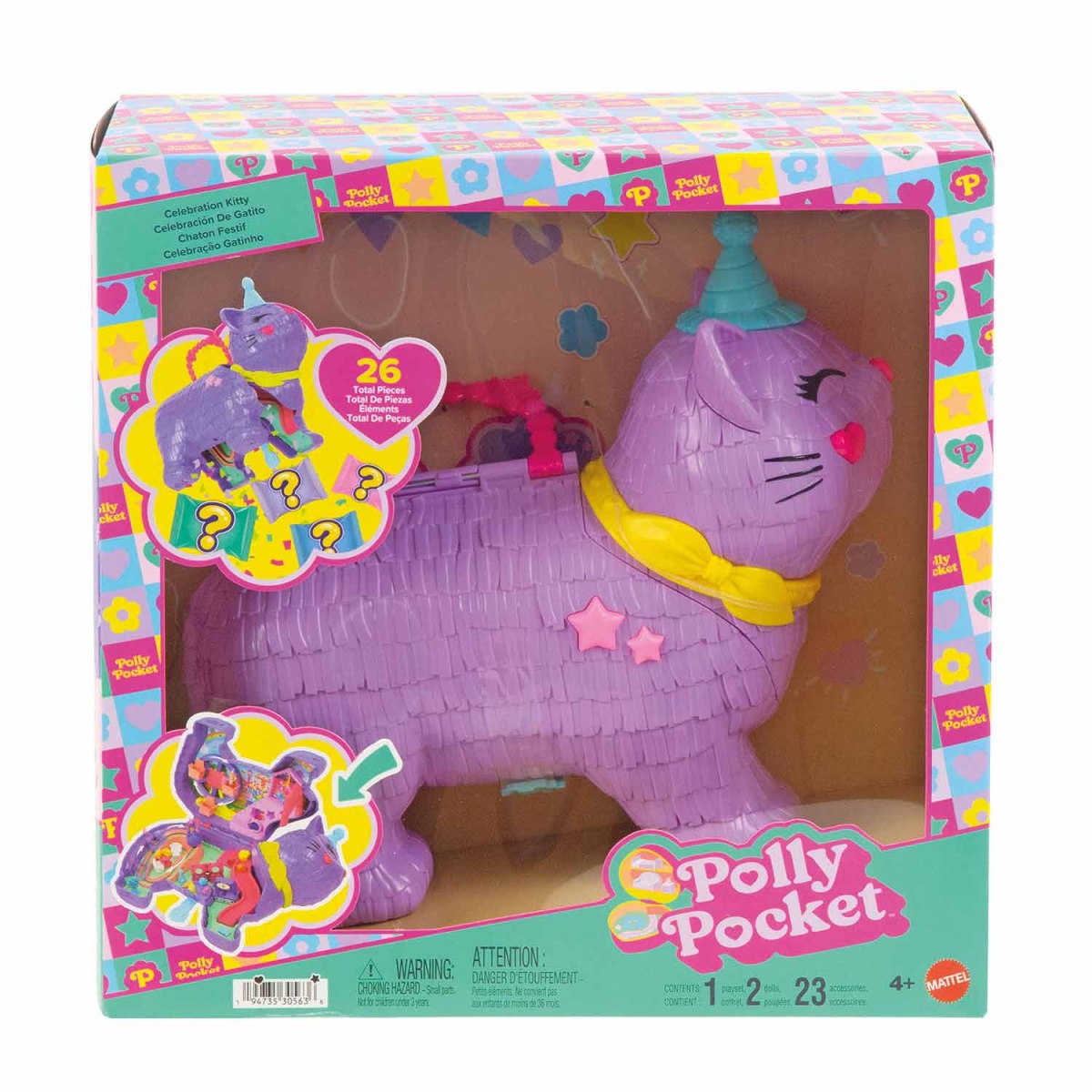Ideal para crianças a partir dos 4 anos, que podem celebrar qualquer ocasião com o conjunto de brinquedo Polly Pocket Gatinho Festivo!