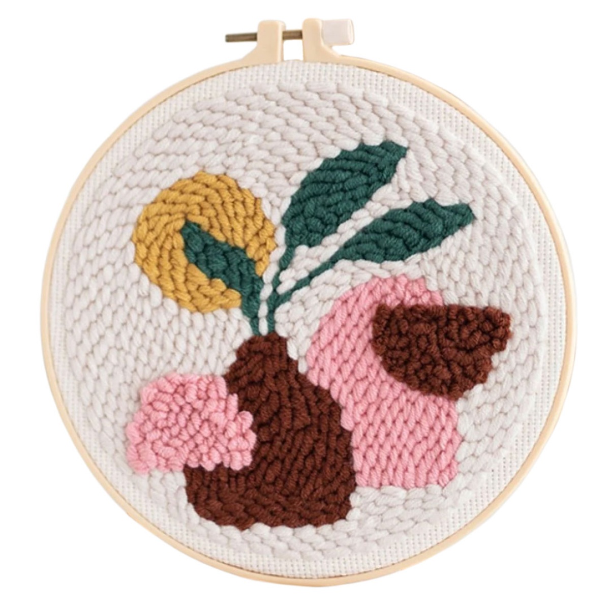 kit punch needle figured'art com moldura circular 20cm planta em vaso castanho
