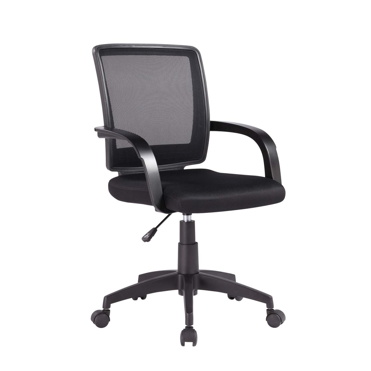 The 11.5 cm gas piston allows for easy height adjustment, adapting the chair to your ideal working position. The plastic-coated base with five 6 cm diameter nylon wheels ensures smooth and quiet mobility, protecting the floor from scratches. The fixed plastic armrests complete the ergonomic design, offering discreet and functional support. Key features: Total height: 90 + 10 cm; Backrest height: 46 cm; Seat height: 44–54 cm; Seat width: 47 cm; Seat depth: 57 cm; Frame: plasticized base with 5 nylon wheels; Fixed plastic armrests; Weight: 8.75 kg; Supports up to 120 kg. A versatile, comfortable and practical chair, perfect for modern offices or home offices.