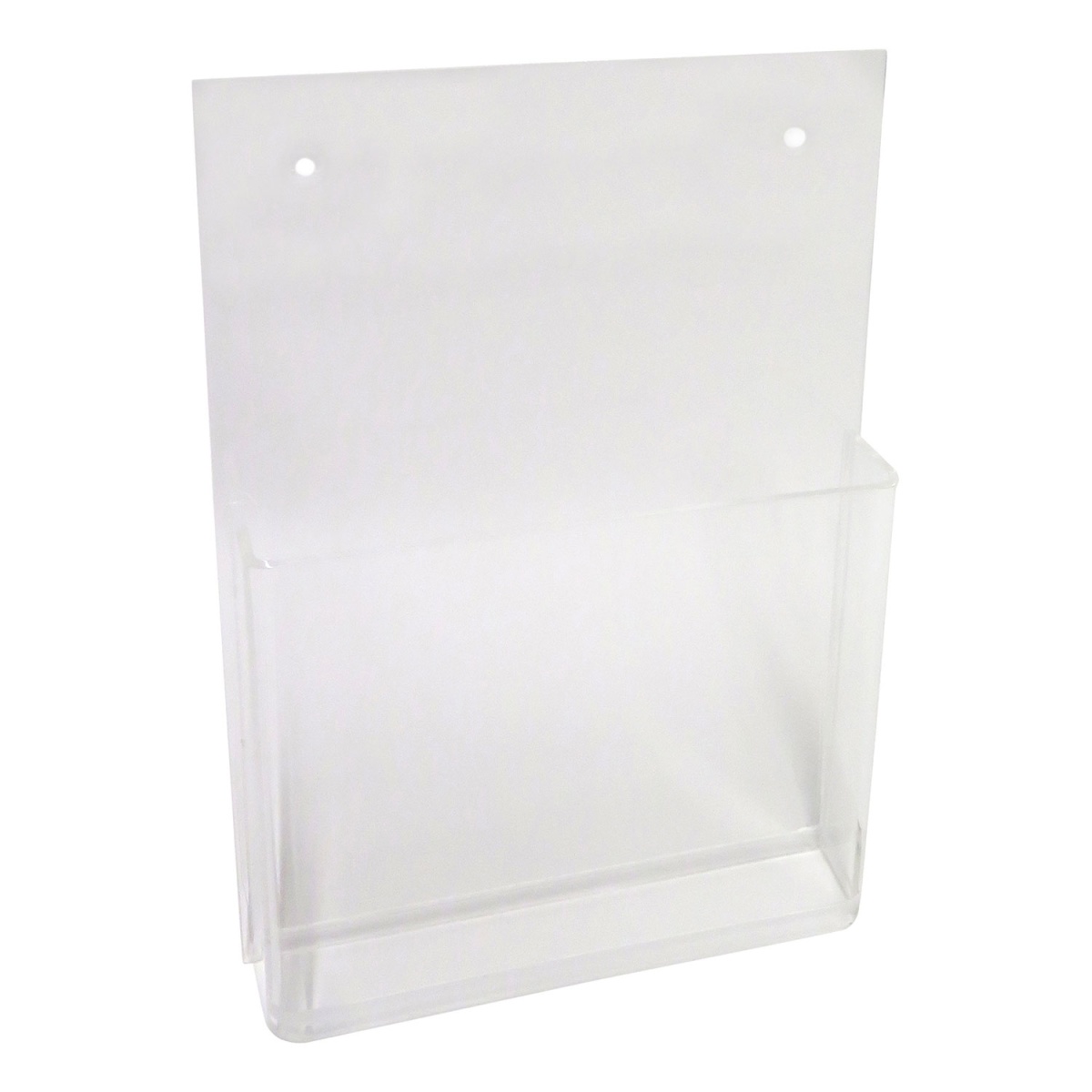 acrylic wall-mounted brochure holder, 10.5x21.5cm, vertical, with box and holes.