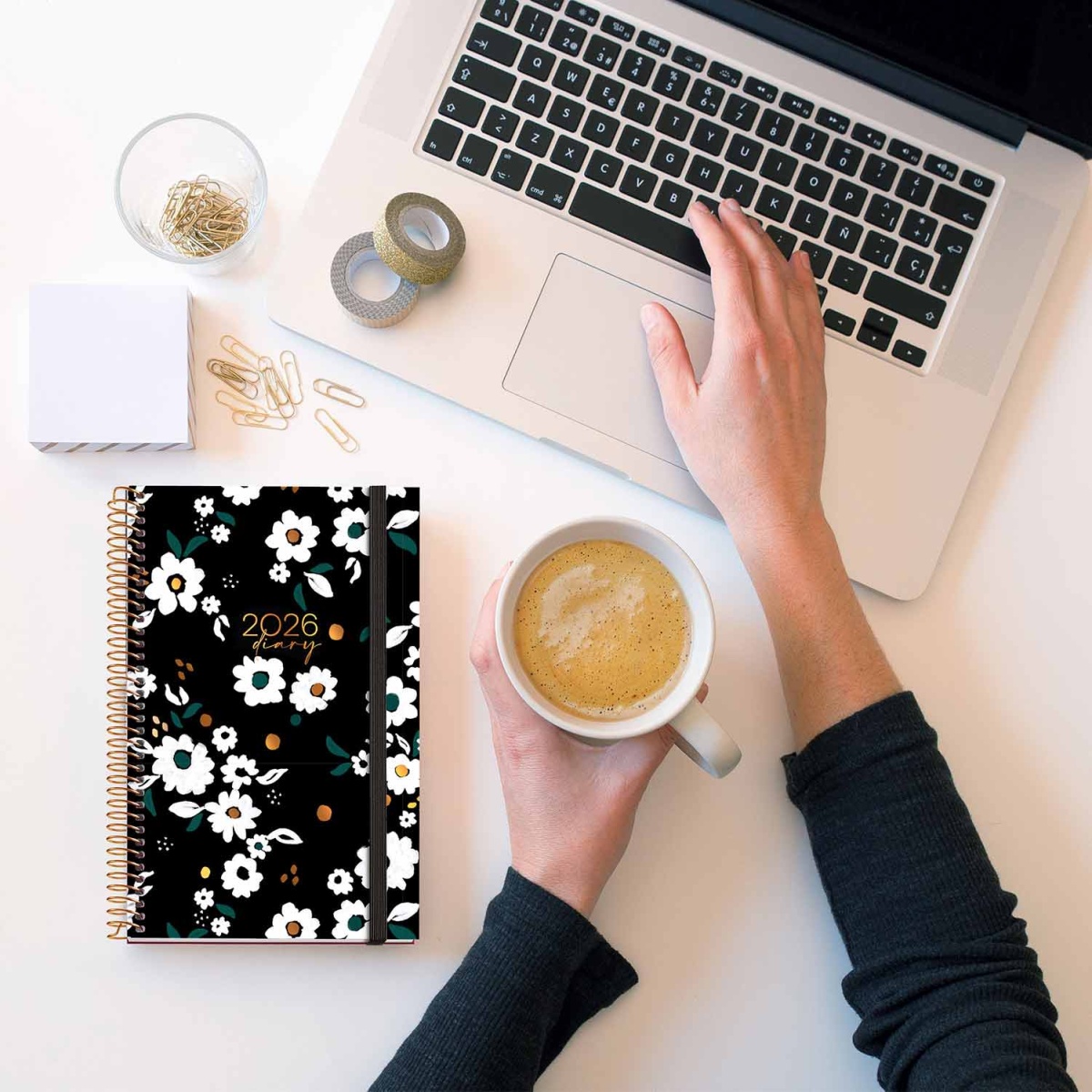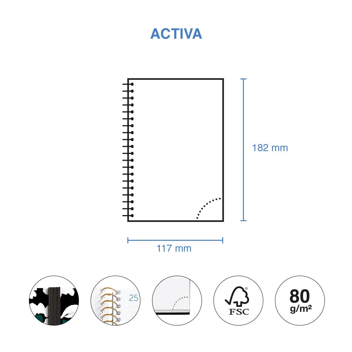 Agenda semanal 117x182mm 2026 espiral MIQUELRIUS Activa Natura Noir Garden com elástico