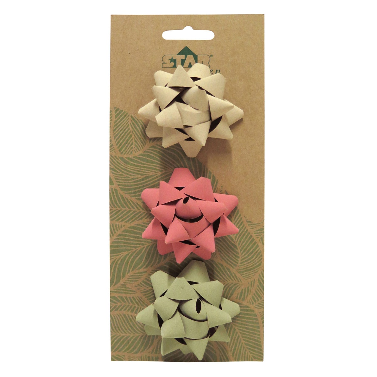 Laço de embrulho STAR 13mm cores pastel (bege/rosa/verde) - 3 unidades