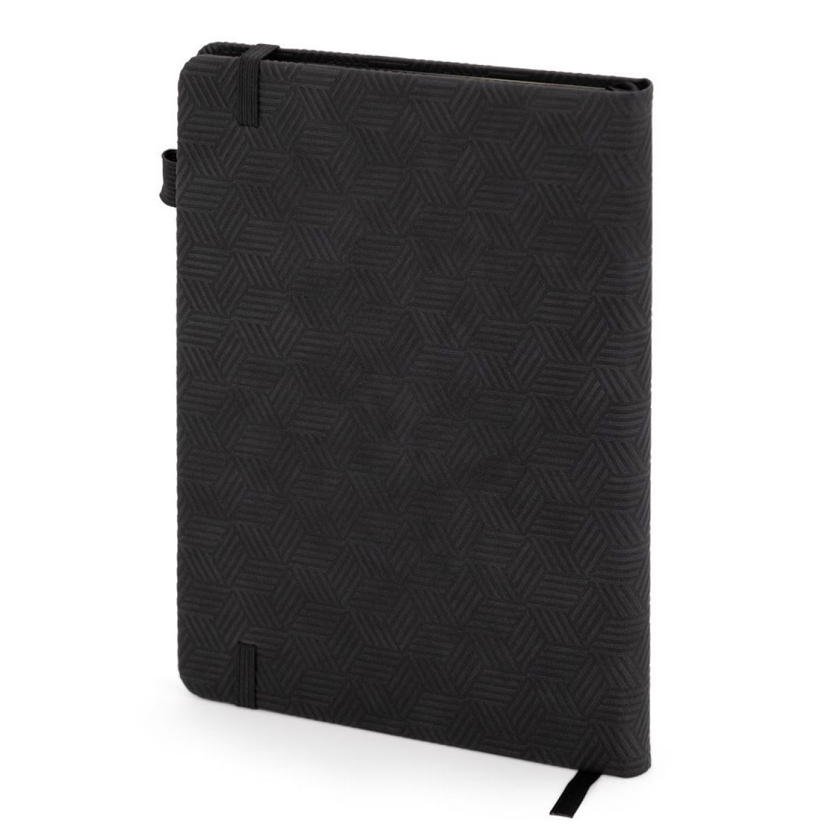 benfica a5 lined notebook, 80 sheets, black, with elastic closure.