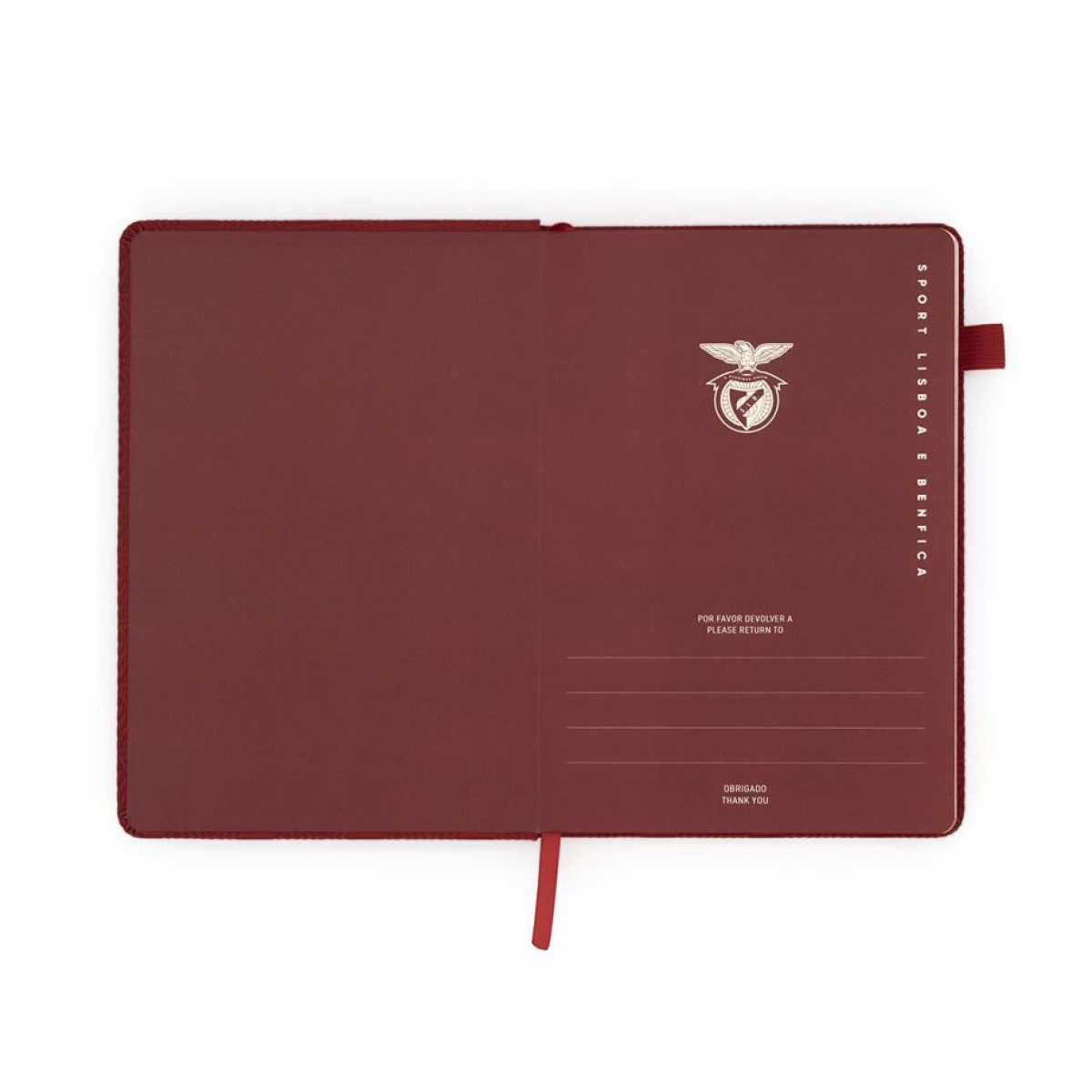 benfica a5 lined notebook, 80 sheets, red, with elastic closure.