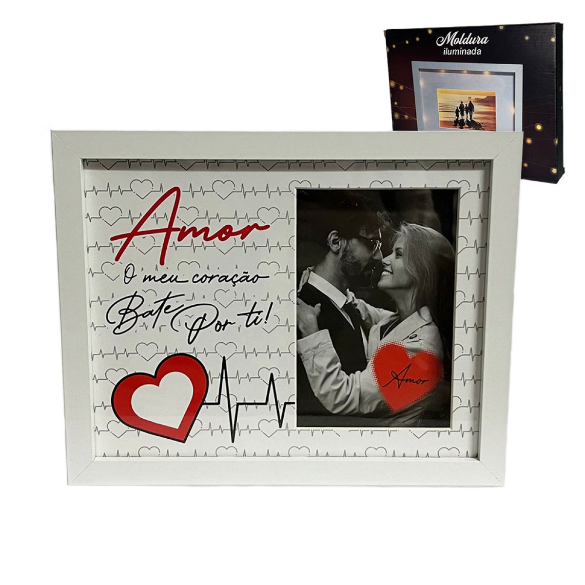 illuminated frame "love, my heart beats for you"