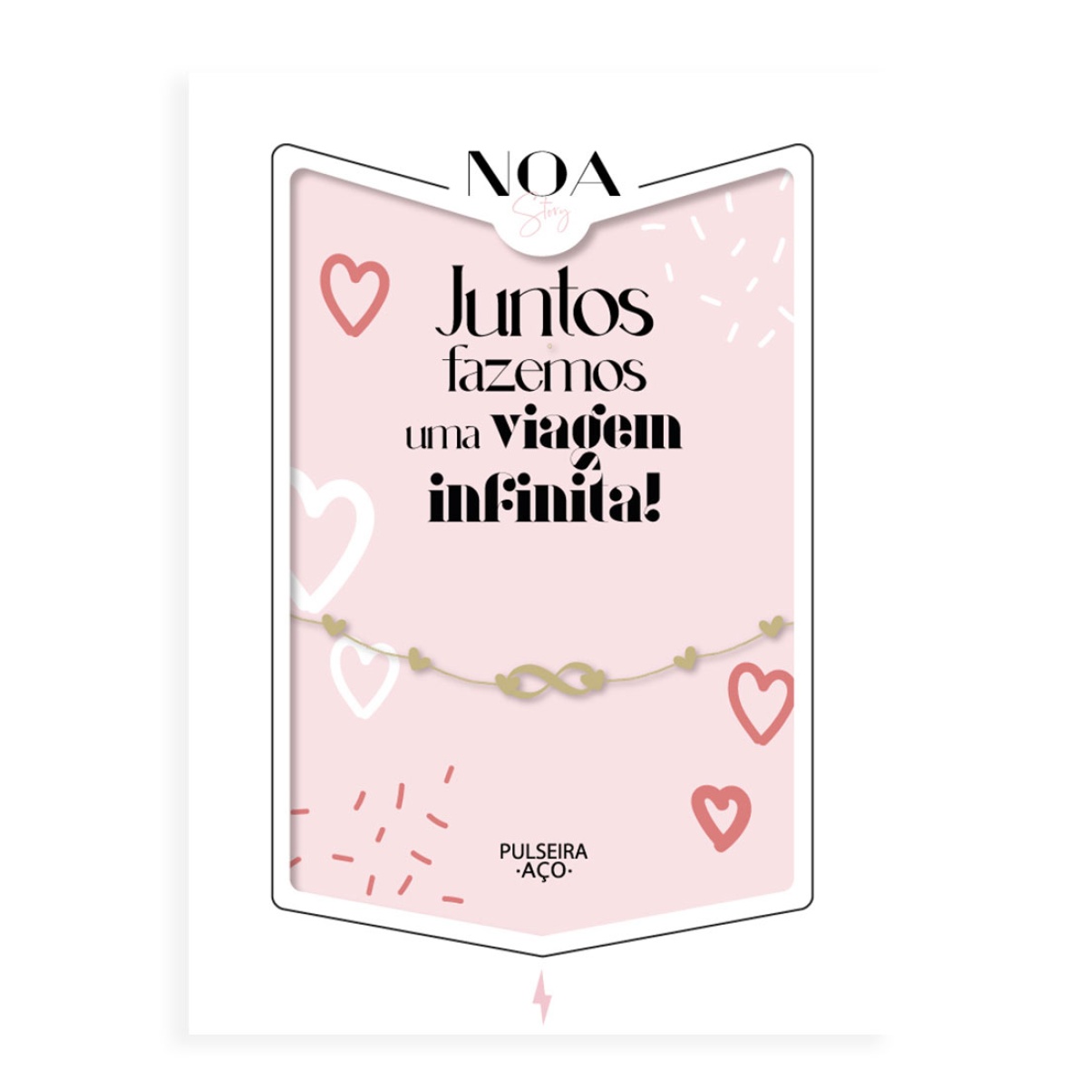 pulseira aço dourado noa story corações "juntos fazemos uma viagem infinita"