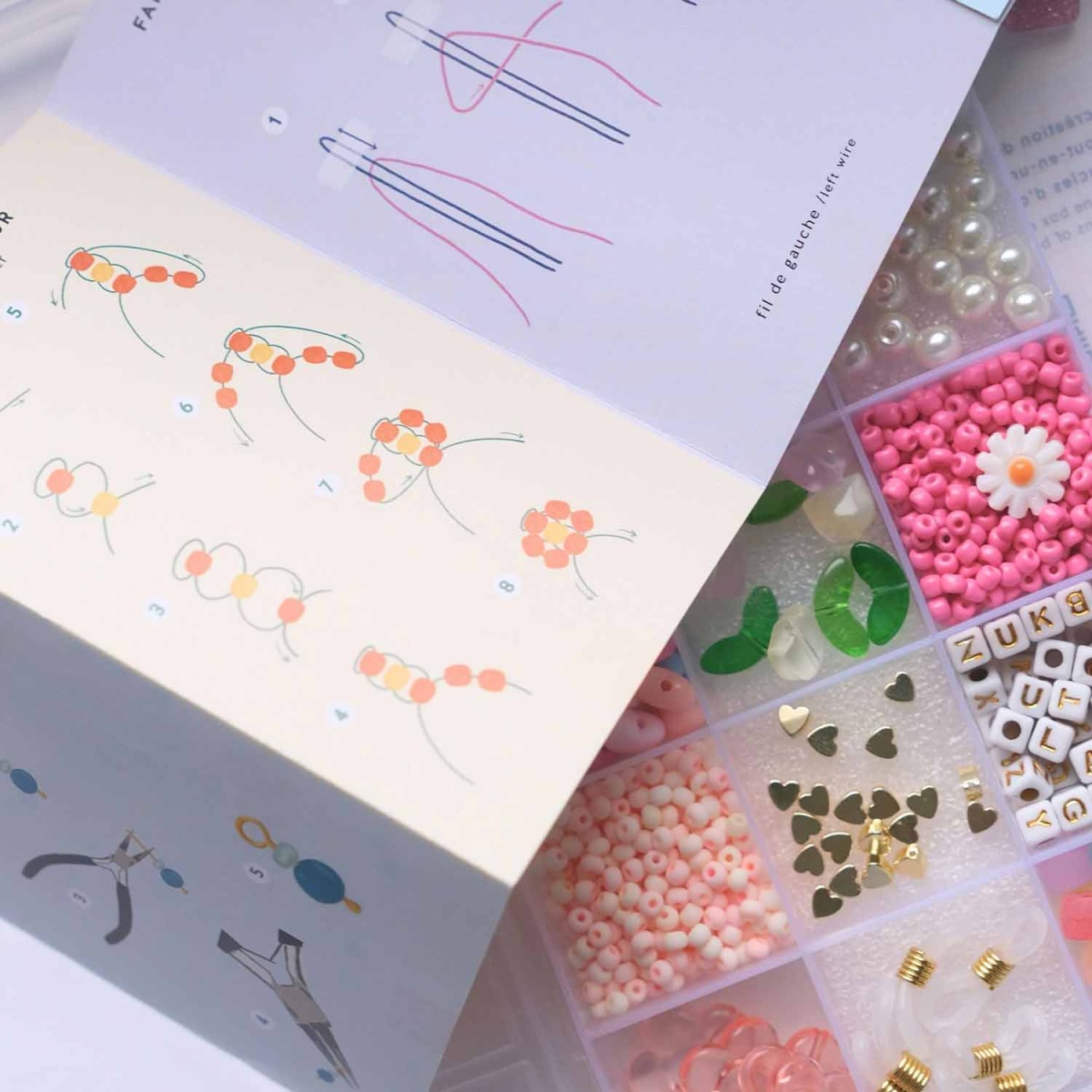 O manual incluído permite que qualquer pessoa se aventure facilmente na criação de peças coloridas e divertidas: colares vibrantes, pulseiras alegres ou brincos originais.