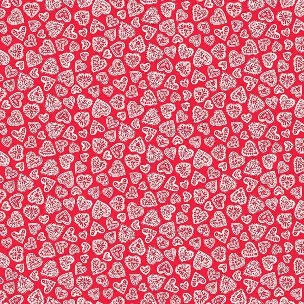 Tecido MAKOWER Christmas Scandi Hearts red 1x1,12m