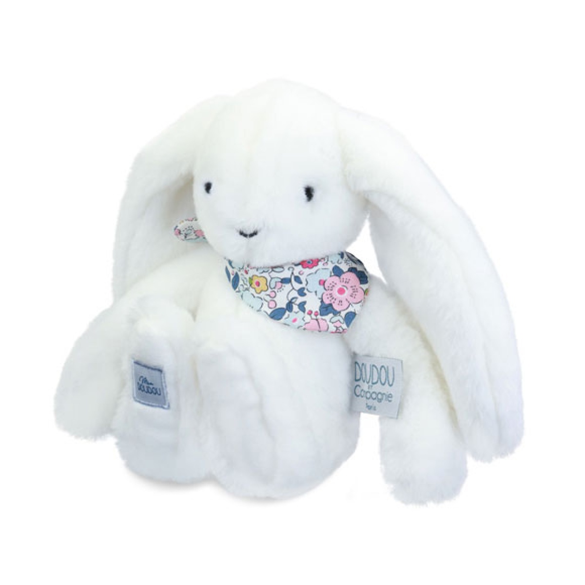 Ofrezca un regalo para todas las edades con este conejito de peluche blanco de la colección LapinFleurette. Ultrasuave y elegante con su pañuelo floreado, transmite dulzura y comodidad, fomentando un vínculo duradero. Para adultos o niños, este peluche es una idea de regalo original.