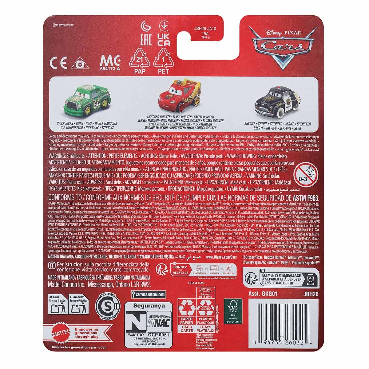 Mini figuras de Disney Pixar Cars: Chick Hicks, Rayo McQueen y Sheriff Mattel (3 unidades) GKG01 / JBH26