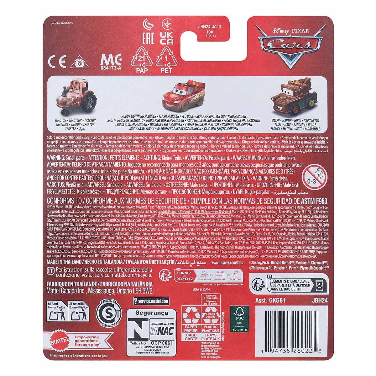 Mini tractor Disney Pixar Cars / Rayo McQueen embarrado / Mater Mattel (3 unidades) GKG01 / JBH24