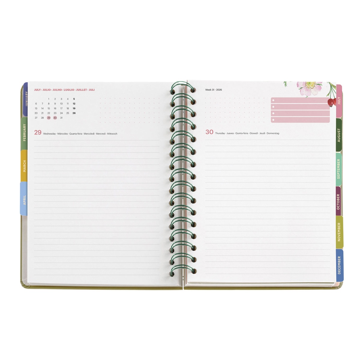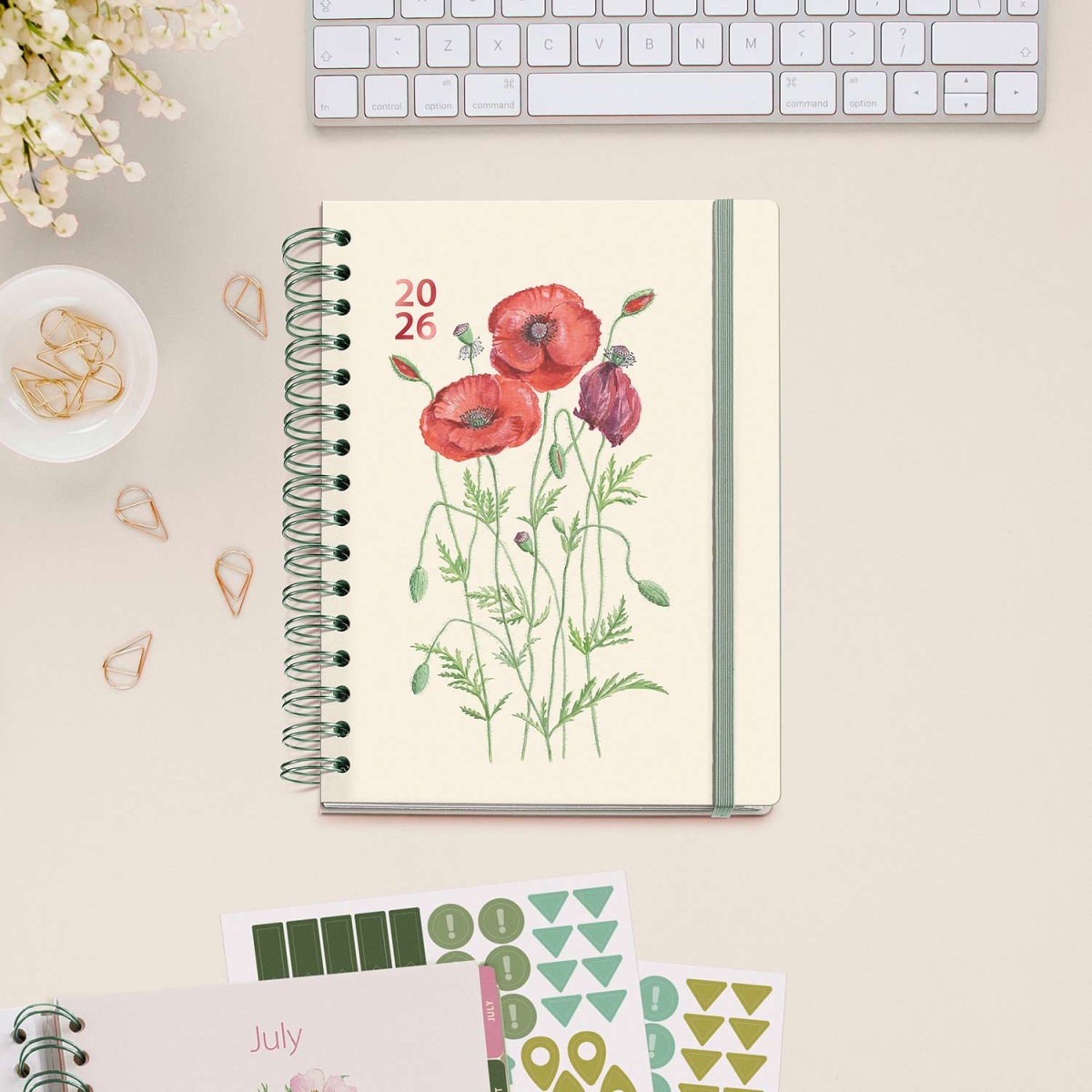 Agenda diária A5 2026 espiral MIQUELRIUS Plus Entredos Amapolas com elástico