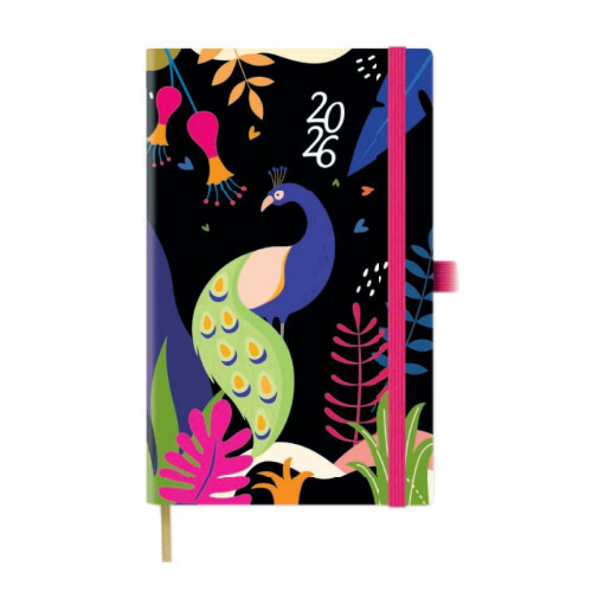 Agenda semanal A6 2026 PAPIRO Animal Graphic pavão com elástico
