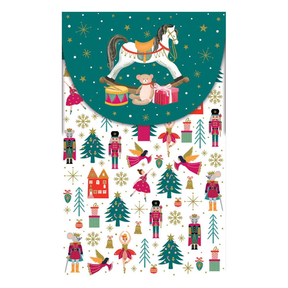 Tarjeta navideña vertical tipo sobre. Ideal para presentar con elegancia un cheque, billetes, un billete de avión o dinero, por ejemplo. Envuelta individualmente en celofán. Incluye un sobre blanco. Impresa en papel con certificación FSC.