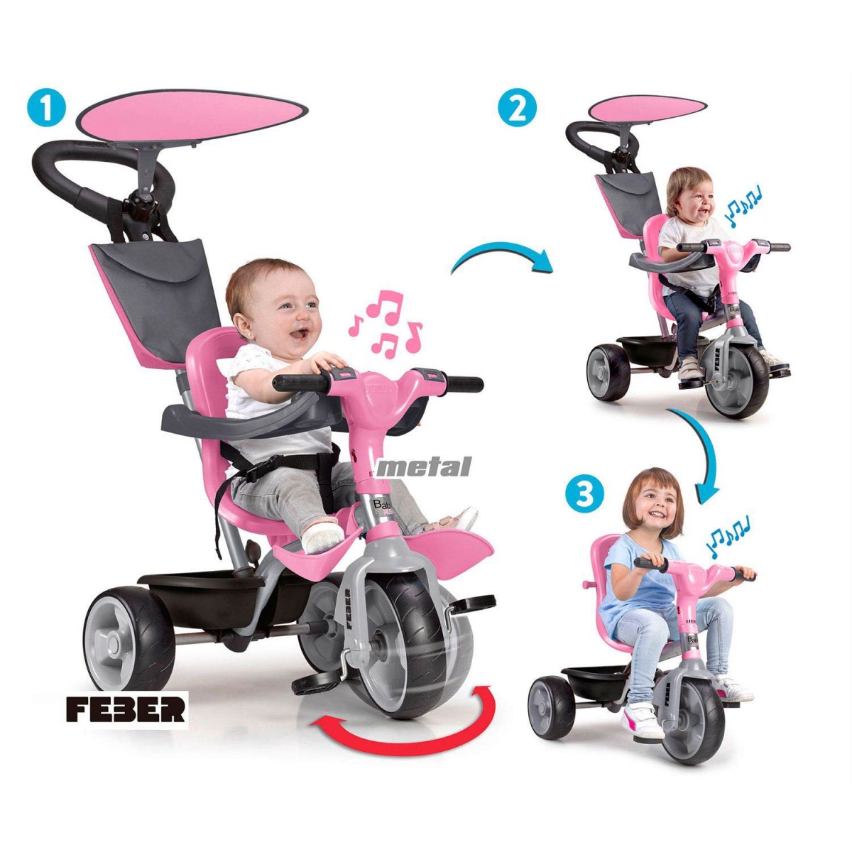 Triciclo Baby Plus Music rosa FEBER Famosa