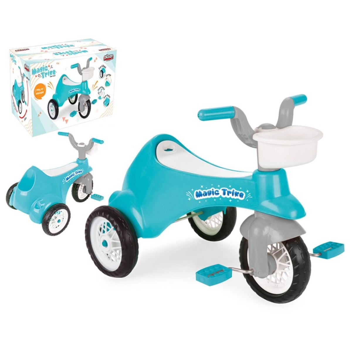 Triciclo com cesto frontal azul claro