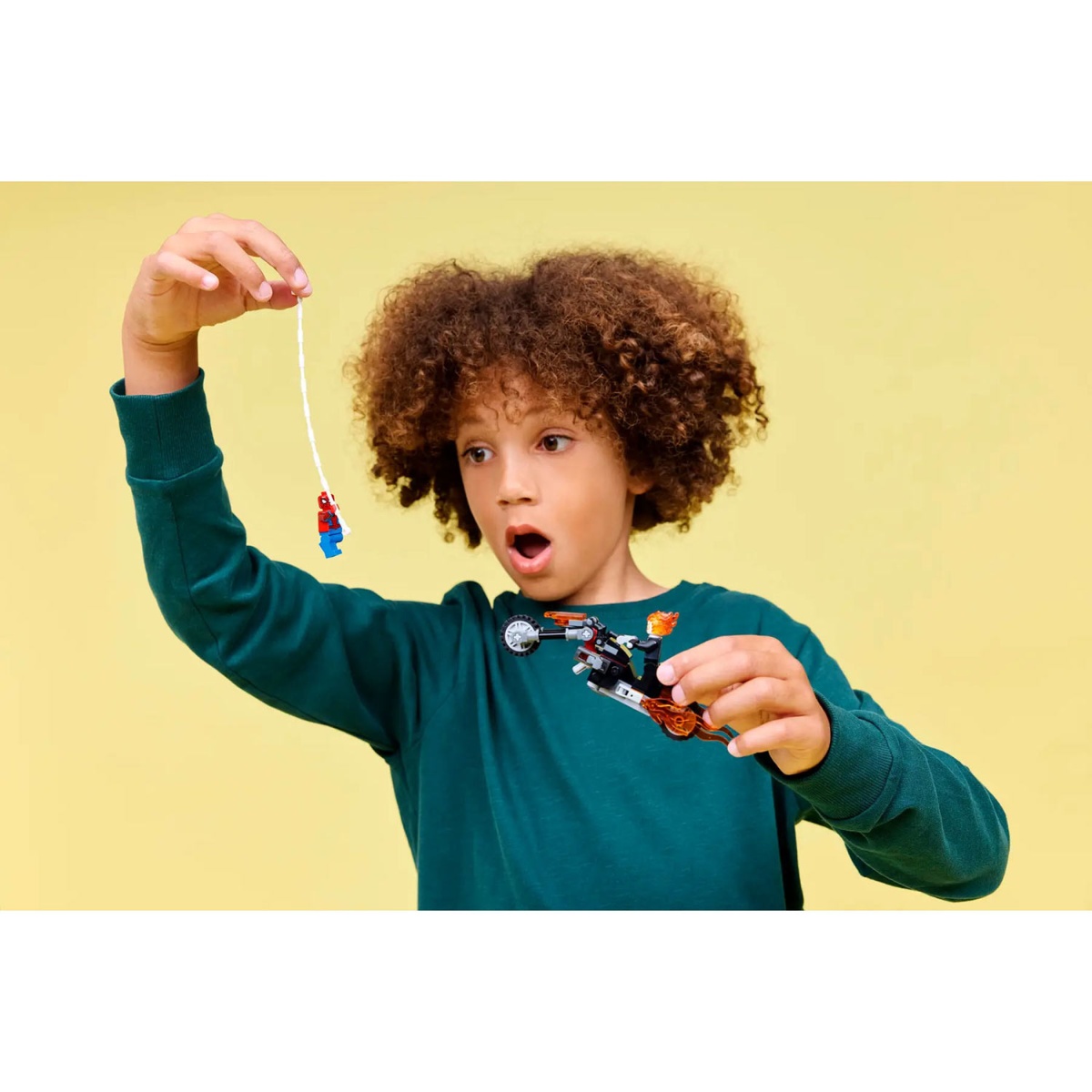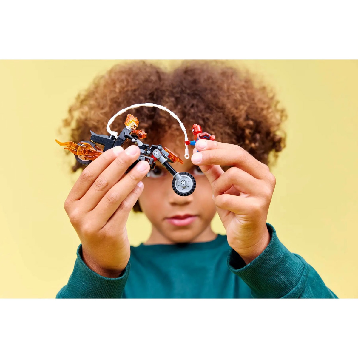 Dê início a uma perseguição a alta velocidade com Super-heróis com o brinquedo Spider-Man contra Mota do Ghost Rider (76335), para rapazes e raparigas 6+. A mota pronta para a batalha do set LEGO® ǀ Marvel e as 2 minifiguras dinâmicas do Spider-Man e do Ghost-Rider incentivam a imaginação das crianças. A minifigura do Ghost Rider é ilustrada como um esqueleto com chamas que irrompem das suas mãos e cabeça. A sua icónica mota inclui 2 escapes e 2 disparadores de espigas incorporados. A corda deteias da minifigura do Spider-Man agarra-se à mota, proporcionando inúmeras possibilidades de brincadeira enquanto as personagem lutam dentro e fora do veículo. Este set de construção é uma excelente ideia de presente para o aniversário dos pequenos Super-heróis, construtores LEGO e fãs de merchandising colecionável do Spider-Man. E com a app LEGO Builder, as crianças constroem com confiança – ampliando, rodando em 3D e acompanhando o progresso com instruções digitais simples. O set de construção contém 72 peças.