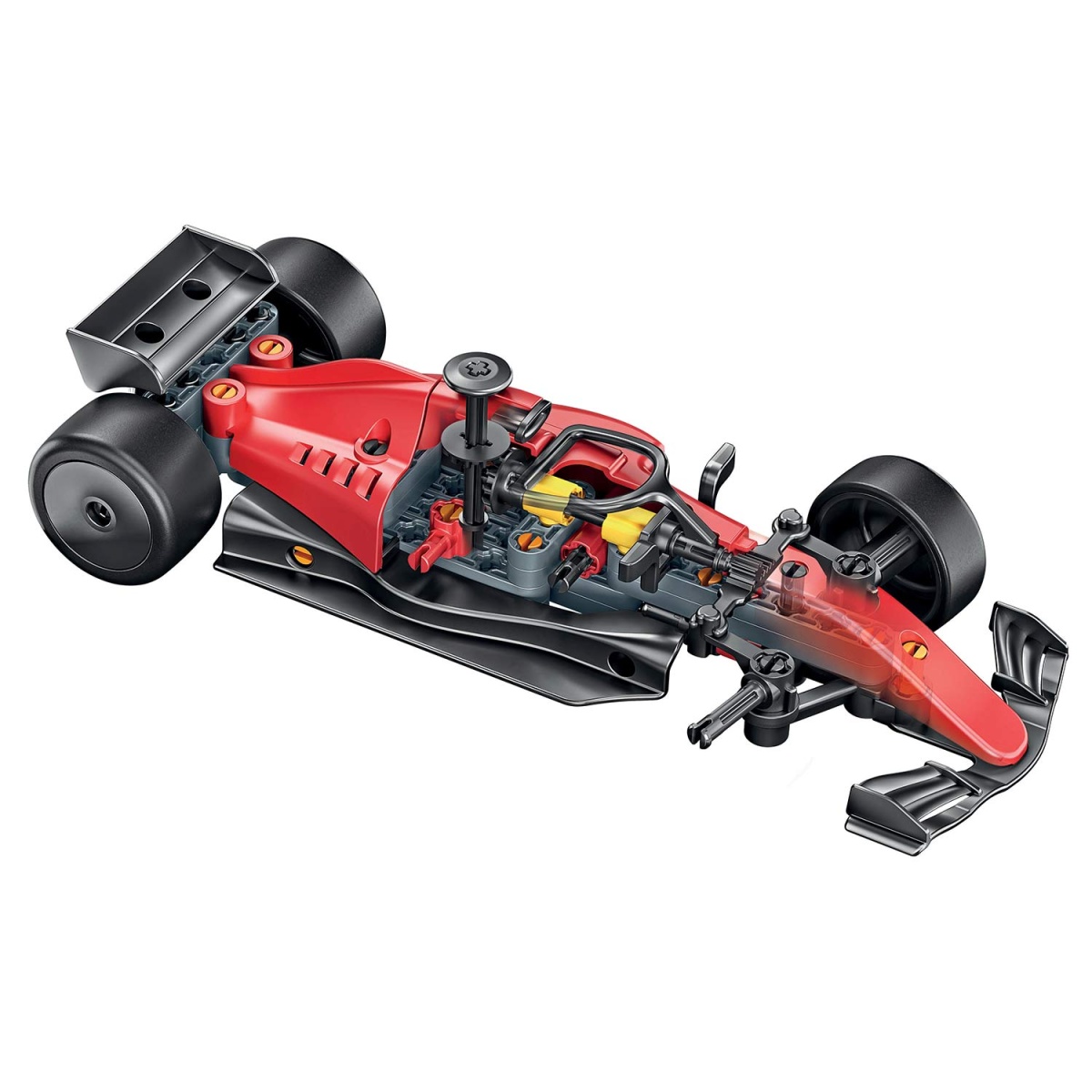 Um kit de construção para montar um Speed Racer realista, com rodas, engrenagens e pistões de movimento alternado.